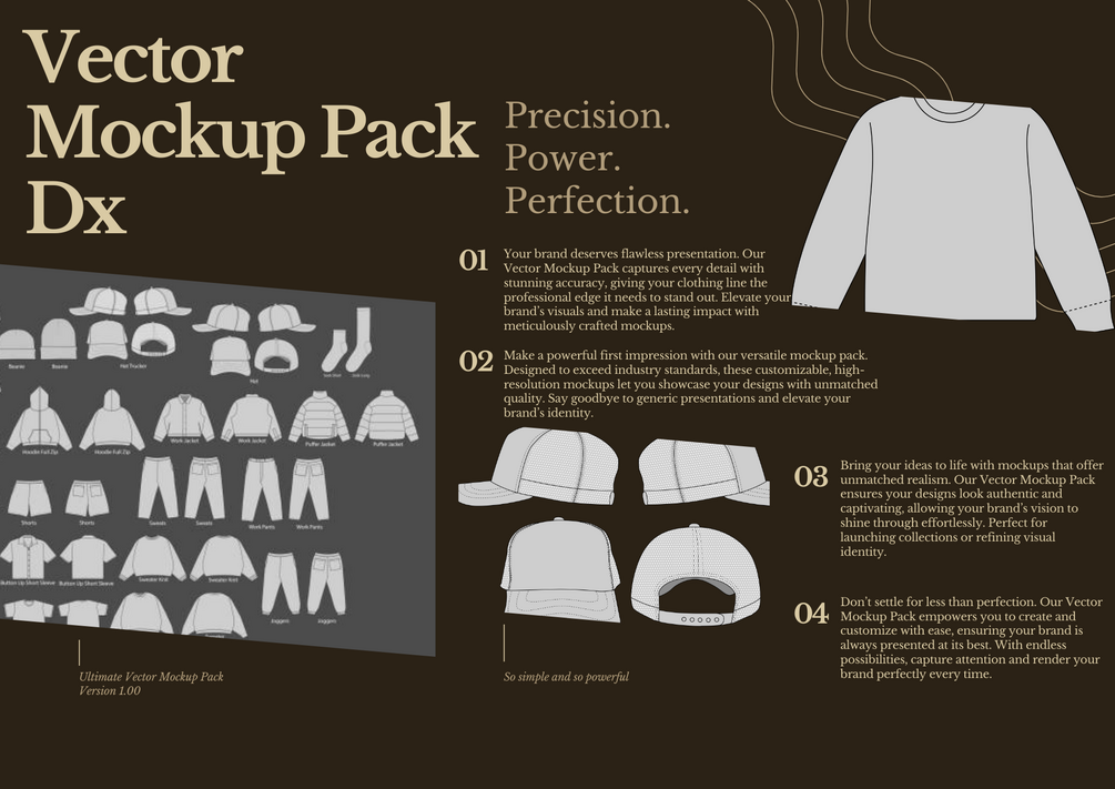 Unlock the potential of your branding projects with this comprehensive Vector Mockup Pack Dx, designed exclusively for apparel. Whether you're a designer or entrepreneur, this pack offers high-quality mockups to bring your vision to life.